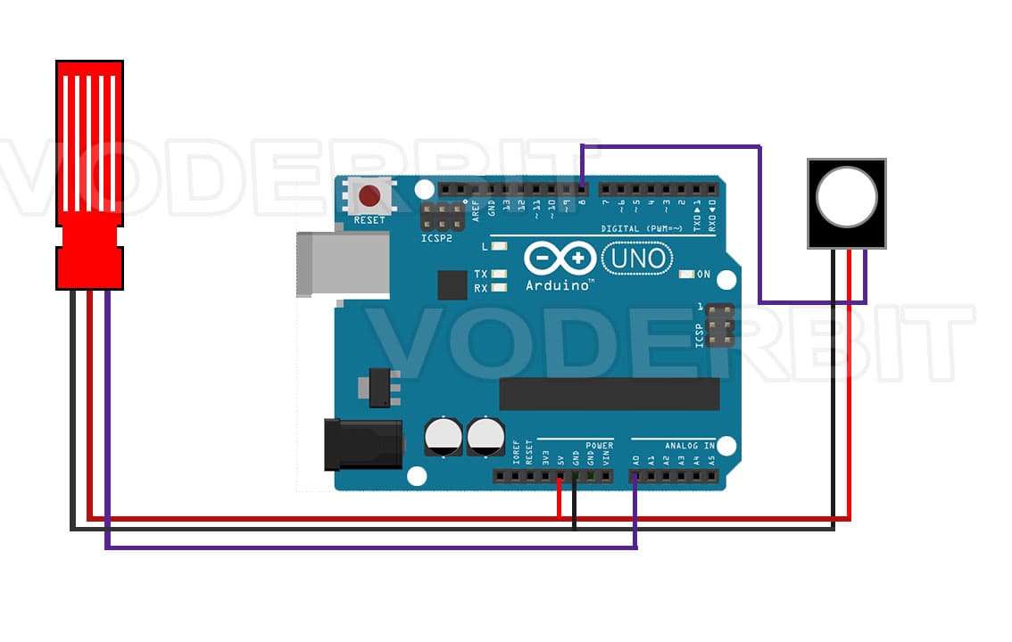 El Arduino Uno lee este voltaje variable a través de su pin Analógico A0. Su Convertidor Analógico-Digital (ADC) de 10 bits traduce el rango de 0V a 5V en un valor discreto de 0 a 1023.